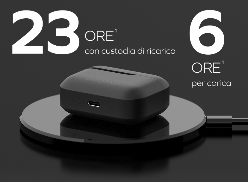 1Basato su un livello di volume moderato. La durata effettiva della batteria varia in base all'uso, alle impostazioni, ai brani e alle condizioni ambientali.