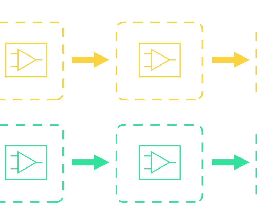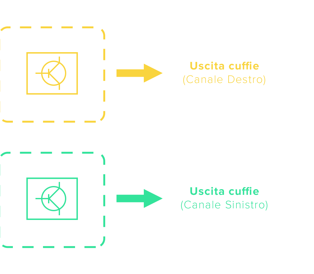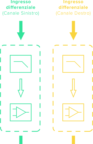 Ogni canale audio (sinistro e destro) passa per 3 stadi di circuiti di amplificazione diversi: