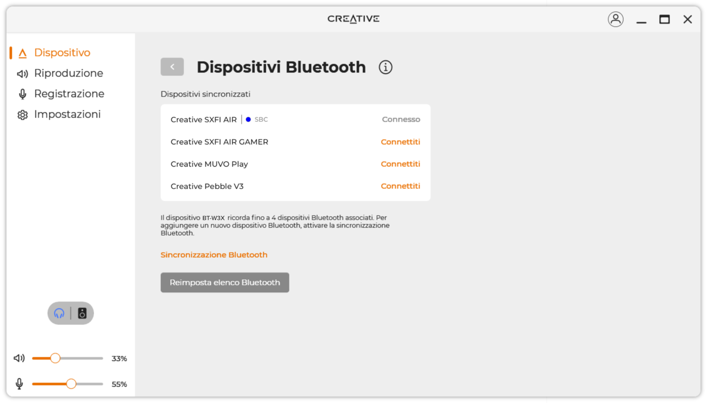 Hai dimenticato la sequenza dei tuoi dispositivi? Nessun problema: è sufficiente scaricare e installare l'app Creative sul tuo PC per controllare i dispositivi registrati. Puoi anche selezionare i dispositivi vicini da sincronizzare o ricreare l'intera lista dei dispositivi collegati facilmente tramite il software.