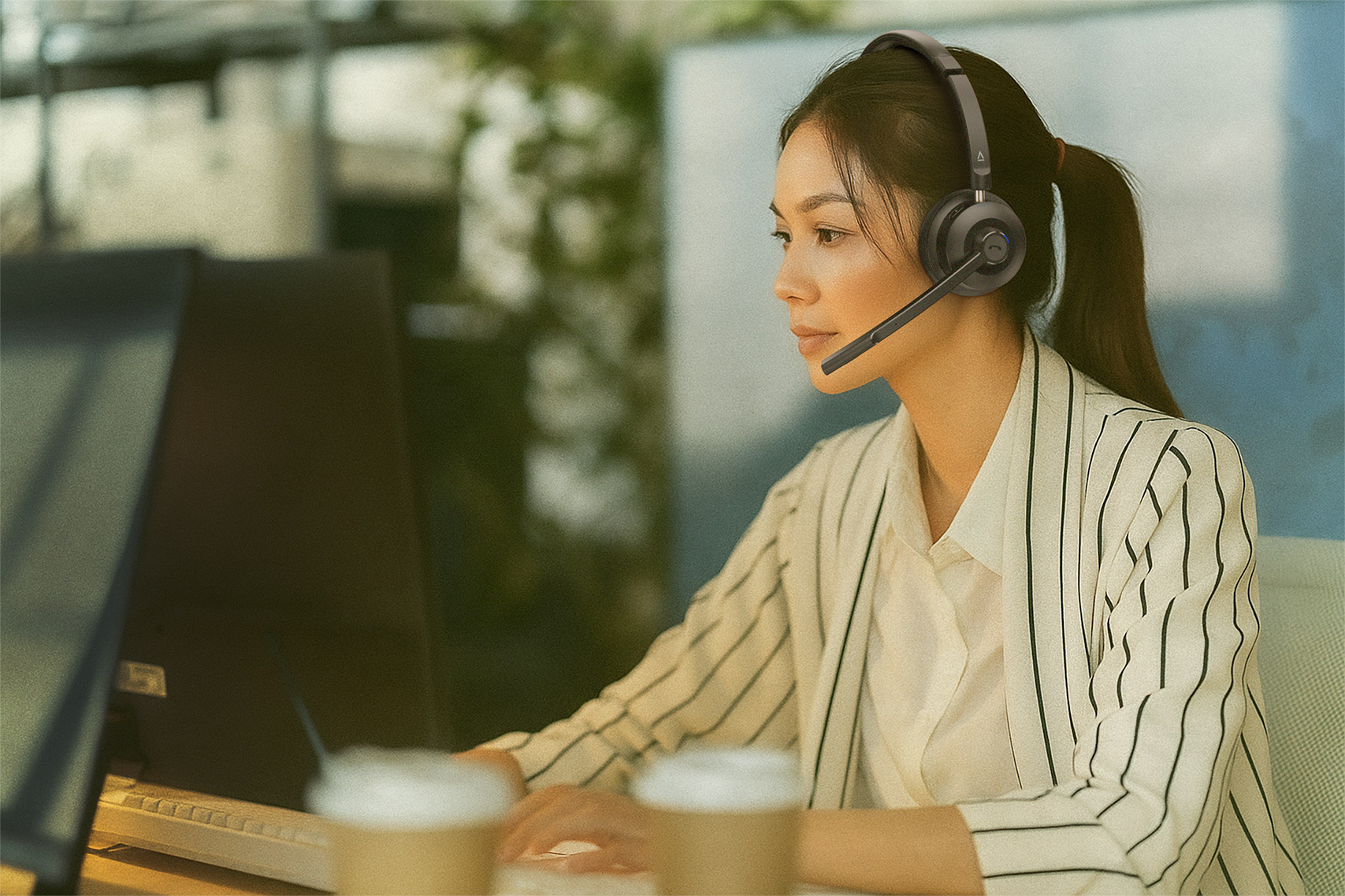 Progettate per il lavoro e l'uso quotidiano, le Chat Wireless sono le cuffie ideali per chiamate chiare e comfort per tutto il giorno.