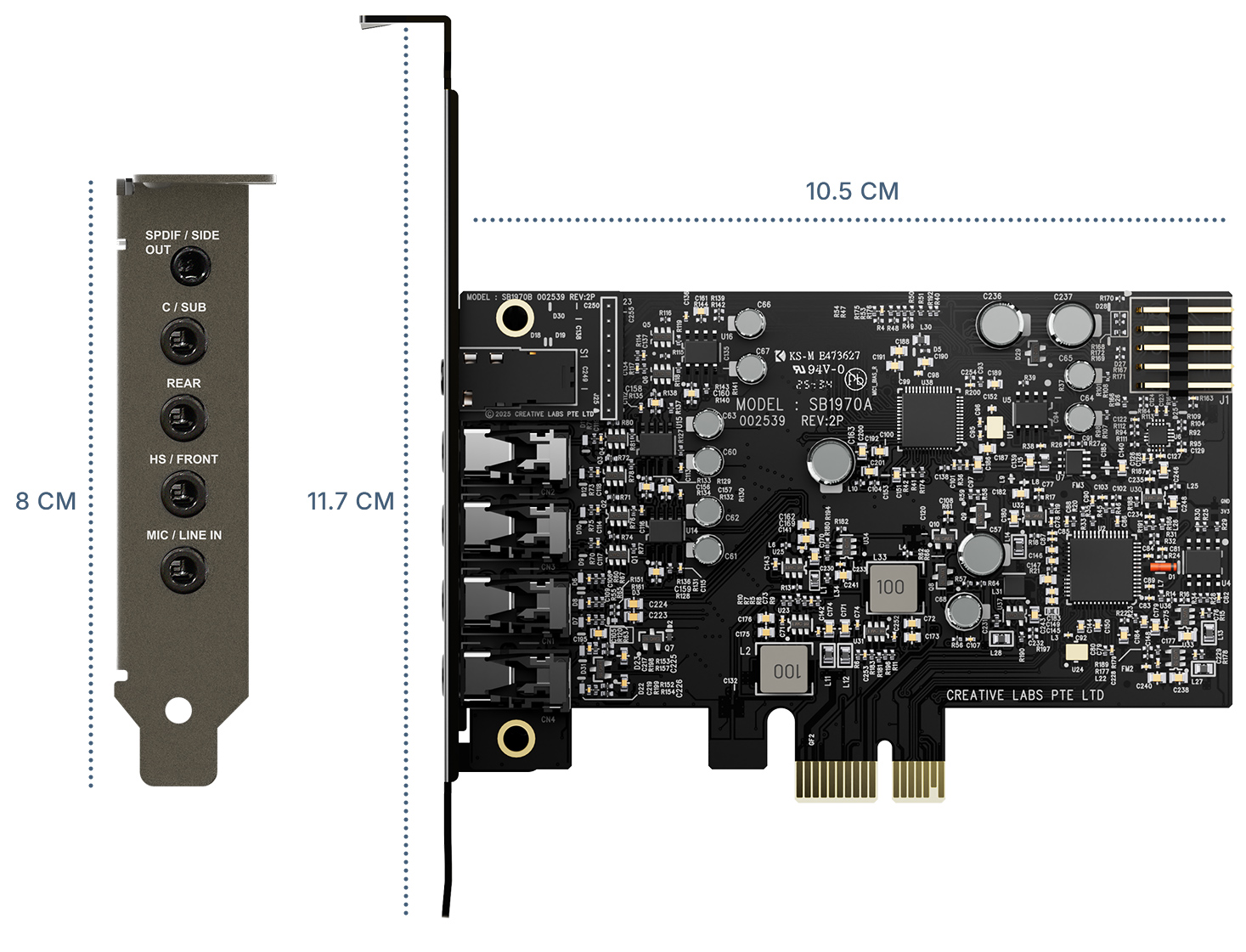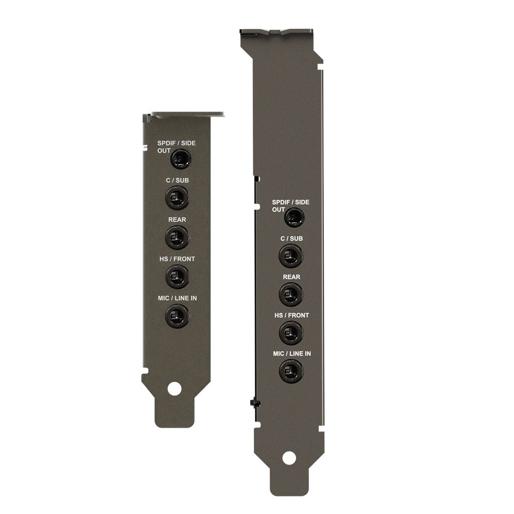 Progettata per PC compatti, Audigy Fx Pro presenta un fattore di forma piccolo e a basso profilo, con una lunghezza di soli 10,5 cm. È inclusa anche una staffa a mezza altezza per garantire la compatibilità con case più piccoli e diverse esigenze di assemblaggio.
